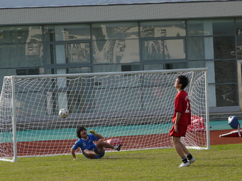 华师第三个出场的是全场表现抢眼的9号罗礼宁,然而他的点球却偏右门柱而出。按照比赛规程,只要下一个出场的广外2号张俊昌罚进点球,广外明星队就将以4:3取得本场比赛的胜利。无奈张俊昌的射门由于角度太正被华师队门将扑出。比分仍保持在3:3,悬念还在继续。