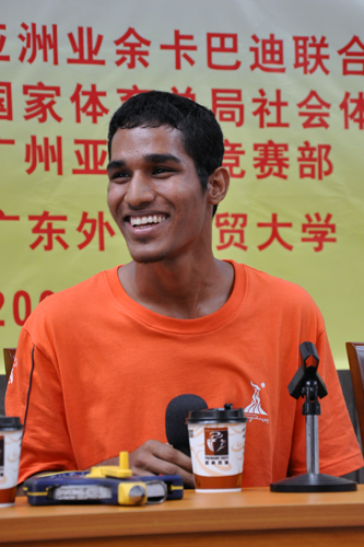 普拉塞德·劳先生随后的致辞充满激情和幽默。他表示北京亚运会正式确立卡巴迪为亚运会项目说明中国和卡巴迪有着不解之缘。因为中国和印度占有世界上的大多数人口,他确信如果更多的中国人加入卡巴迪活动的行列必然会推动卡巴迪在全球的推广。劳先生希望在亚运会中印度代表团能与中国代表团对决,并再次感谢本活动对展示亚洲传统运动做出的努力。