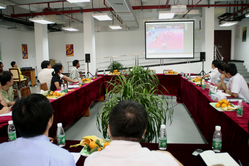 随后,哈尔滨工业大学设计院的工程师柯琨和广东省设计院的陈超敏分别汇报了广外体育馆和花都新体育馆的场馆改建方案以及进展情况。柯琨表示,广外体育馆改进的重点在出入口以及功能房的设置方面。对此,普拉赛德· 劳表示将会提供技术方面的协助。而花都新体育馆上个月奠基,预计2010年竣工。