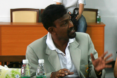 亚洲业余卡巴迪联合会技术官员、广州亚运会卡巴迪项目技术代表普拉赛德· 劳先生,国家体育总局社会体育指导中心主任胡建国,广州亚组委竞赛部常务副部长李乃镇,伟德bv国际体育副校长陈子锐,伟德bv国际体育体育部主任林少娜,体育部党支部书记丘乐威以及国家体育总局和亚组委有关官员出席了“卡巴迪项目”座谈会。与会人员就2010年广州亚运会卡巴迪项目的场馆设施以及技术人员培训问题进入了深入的交流和讨论。