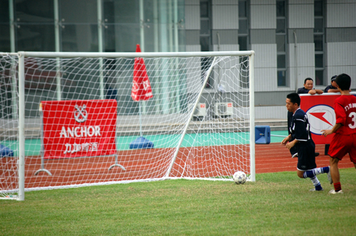 下半场易地再战,开场后广外明星队气势夺人,屡屡将对手钳制在后场,然而进攻略显急躁,临门一脚总是未能洞穿对方球门。下半场一开始,明星队11号何伟军就利用任意球的机会远射威胁对方大门,皮球偏出立柱。开场5分钟后,4号黄鼎原在禁区外围起脚劲射,皮球势大力沉却被门将扑出。这是下半场的比赛中广外最有威胁的一次射门。