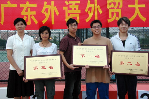 赛后还进行了颁奖仪式。据悉,作为广外在南校区举办的第一届游泳比赛,学校体育部对于这次比赛也给予了极大的重视。比赛当天,体育部的老师们更是全体出动,奔走在比赛的各个岗位上,确保了比赛的顺利进行。