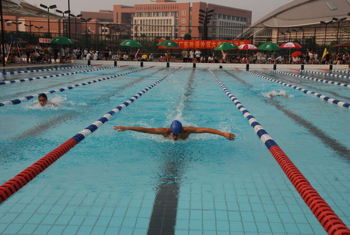 校游泳队成员云集的经贸学院成为本次比赛的最大赢家。经贸学院的黄胜杰更是在男子100米蝶泳比赛中以1分04秒36破校记录折桂,并在男子4×50米自由泳接力中助团队夺魁,他表示对自己以及团队的表现十分满意。当被问及连破两项记录的感受时,黄胜杰谦虚地说,自己的最大对手就是自己,今天的比赛创造了他的最好成绩,那就是自己的目标,而他就是这样朝着他的目标一路前进。