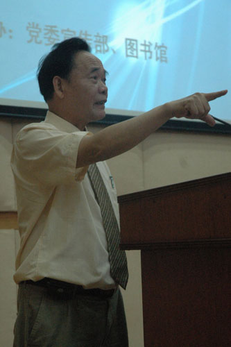 讲座接近尾声时,进行了主讲人与听众的互动环节。同学们积极发问,有向古远清请教他对“文化商人”这一名词解释的,有向其求证新浪网上关于“古远清抄袭余秋雨”传闻的。提问到后来,越发深入,甚至有同学向古教授提出了“大学生应该了解多少文革,怎样认识文革”等问题。古远清一一做了详细的回答,并呼吁大家正视历史,以史为镜,不断反思和完善自己。