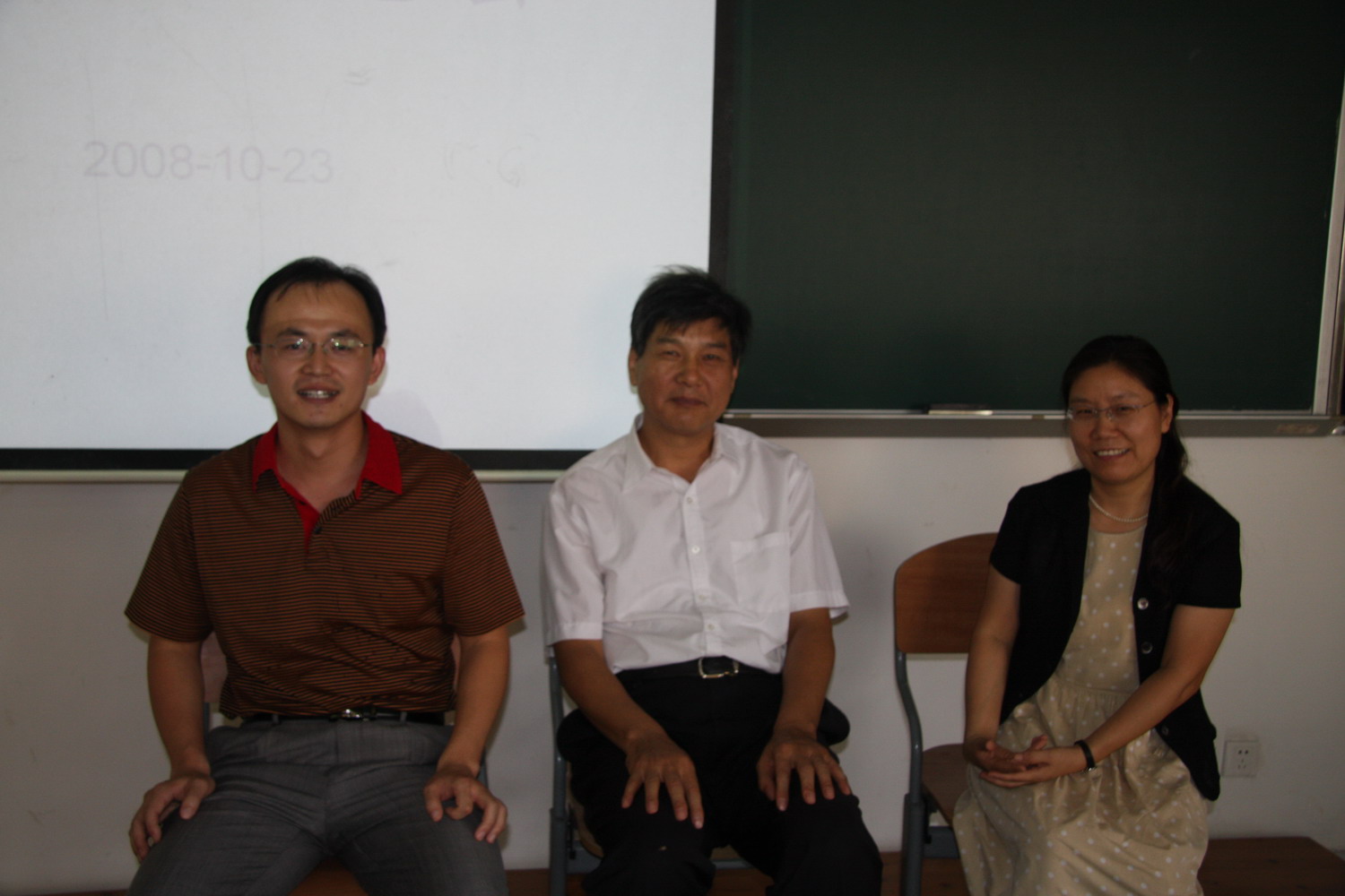三代名师同堂演讲(中为左连村,左为魏作磊,右为何元贵)