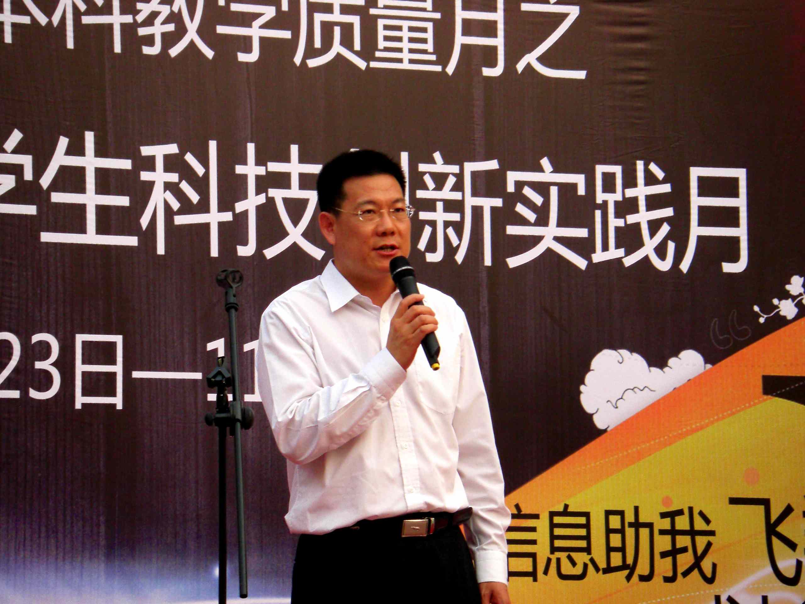 仲伟合在揭幕仪式上发表讲话,他指出在加强教学质量的大前提下,学生应具备四个能力,包括学习能力,实践能力,创新和创造能力,就业和创业能力。同时,他高度评价信息学子取得的成绩,认为信息学院为广外带来了科学的精神,与学校的人文精神形成了良好的互补。随后姜灵敏对第一届科技月活动作了总结,表达了把此次科技实践月打造成一个充分展露信息学子才华和技术的平台的愿望。