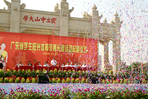 10月26日上午,广东省学生阳光体育冬季长跑活动起跑仪式在大学城中大正门前举行。出席本次活动的嘉宾有广东省教育厅副厅长李学民,省教育厅副巡视员钟云彪,省教育厅体卫处处长莫宝光、副处长许舒翔,省共青团相关领导以及各学校领导等,伟德bv国际体育副校长仲伟合也出席了此次活动。此外,伟德bv国际体育,BETVICTOR官网、伟德bv国际体育、星海学院、广州大学、番禺新造中学、穗石小学等十二所学校的学生参加了起跑活动。