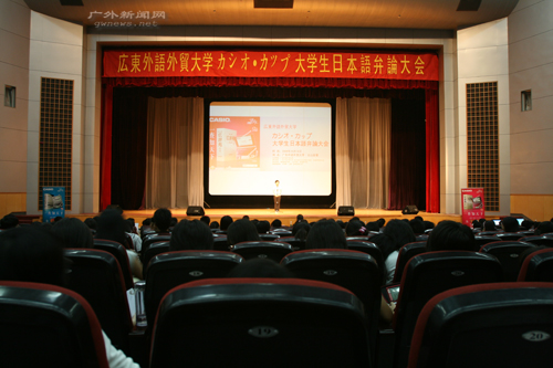 本网讯 10月18日下午,第四届“卡西欧杯”日语演讲比赛决赛在云山会堂拉开帷幕,来自东语学院、南国商学院、继续教育学院共25名选手展开激烈的角逐。本次比赛评委由卡西欧广州营业所主任中村理惠、东语学院副院长陈多友、日语系主任丁国旗及部分日语系教师等担任。经过五个多小时的角逐,日语系07级的李燕与05级的韩曙莲分别摘得零起点组和非零起点组的桂冠。