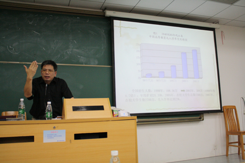 在讲座中,林金辉详细分析了引进优质高等教育资源的必要性,并强调要认清中外高等教育合作地位。他认为,从05年温家宝总理提出要进行教育改革战略重点转移开始,人们就应该开始思考中国高等教育如何从规模扩充转向质量提高,从高等教育大国转向高等教育强国等问题。