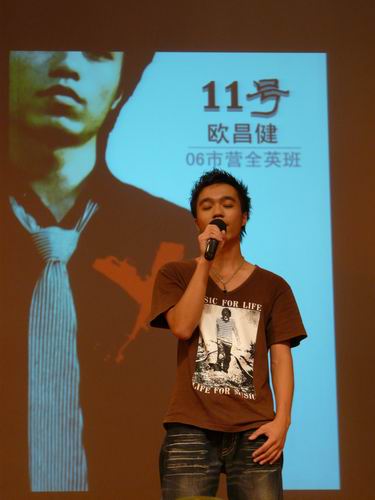 第二组比赛开始,来自07级人资1班的9号选手孔欣以一曲充满激情的《Christmas in my heart》唱响全场,自然的台风更给歌曲平添一份韵味。而12号组合蔡涛和仇菲菲之间的深情对唱,配合娴熟默契。整场比赛中最特别的出场来自11号选手欧昌健,他以扩音器模仿出旧式留音机的音效,感性而略带轻松的嗓音、收放自如的台风,给观众带来了一首充满独特的视听盛宴的《走钢索的人》。