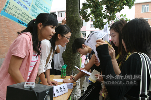 面对如此频繁的校道摆摊宣传活动,同学们又是怎么看的?“不介意有这样的宣传,我都是茶余饭后会去了解,有些活动是也很有趣。”英文学院07级的李同学坦言,她在午饭和晚饭之后会去一些宣传摊位逛一下,有时还会有意外收获。“上次以比较低的价格在宣传摊位上买了一本外文书。”她笑着说。