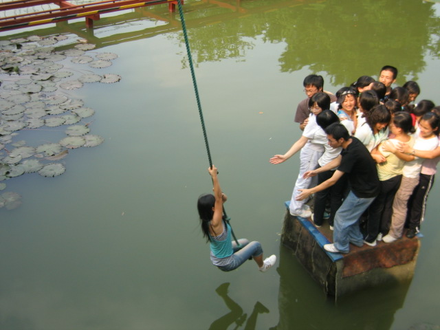 为培养研究生会、研究生团委新干事素质,10月11日,在校研究生会指导老师苏高阳的带领下,研究生干部70多人一行到广州“笑翻天拓展乐园”进行第三次培训活动。活动从简单的集体游戏开始,经过一系列陆上及水上项目逐渐达到高潮。南北校区研究生会、研究生团委干部组建团队、分工合作,在互助的前提下实现团队效率最大化。
