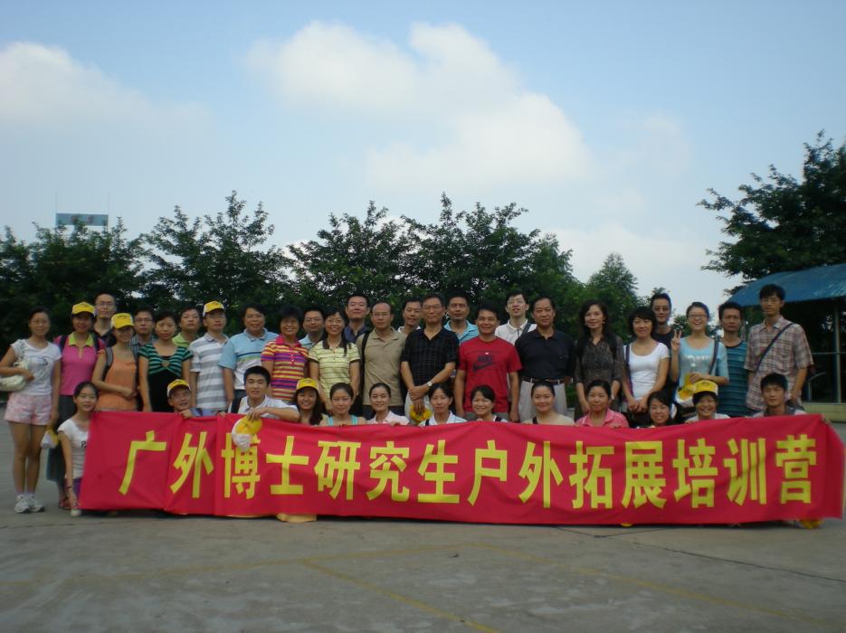 本网讯 9月21日,40名博士研究生在党委研究生工作部的组织下,来到从化三百洞生态度假村,进行户外拓展培训。参加本次活动的领导老师有研究生工作部部长敖湘晖,西语学院党委书记黄巧萍,东语学院党委书记林绍雄等。
