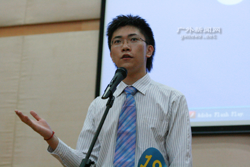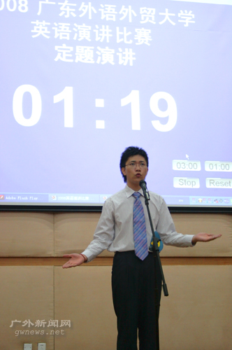 本网讯 9月18日下午,伟德bv国际体育2008英语演讲比赛在南校区图书馆二楼报告厅举行。此次比赛由伟德bv国际体育主办,校团委学生学术科技创新中心承办,来自南北校区的23名英语精英参加了比赛。李海丽、冯光武、张燕,陈开举、高琰,钱芳同外教Richard 、Eberhard担任比赛评委,Eberhard 和王伟强老师作为Question master出席了比赛。