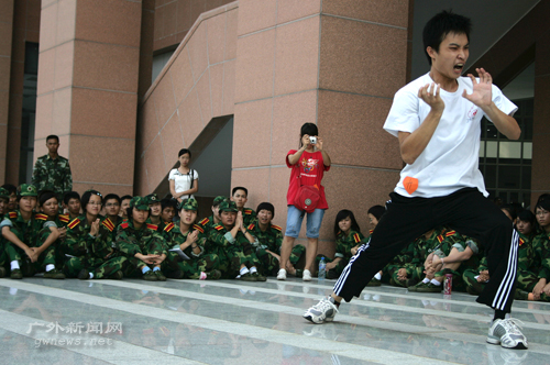 除了有动感十足的舞蹈,优美动听的音乐,各社团也准备了各种各样的题目来考考新生。从专业领域到热点问题,再到北京奥运,每个问题都简单有趣,广外棋牌协会的“中国象棋共有几个棋子?”外交协会的“法国的当前总统是谁?”,还有“今年我国共获得了多少枚奥运金牌?”等问题。同学们争先恐后地举手回答问题,气氛十分热烈。各社团主持人幽默风趣的语言,灵敏机智的反应更是一次次把活动带入高潮。