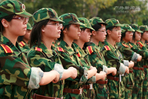今年的军训有一项新的训练,就是要求同学们只能用三分之一的脚掌站在阶梯上训练军姿,张同学向记者描述说,站在台阶上,脚一直在颤抖,很累很辛苦。每次和父母通电话都只是对军训生活轻描淡写,因为怕父母担心所以不敢说辛苦。他希望军训结束以后能通过高年级的学长们更多地了解广外,也希望能加入各种社团来锻炼自己的能力。