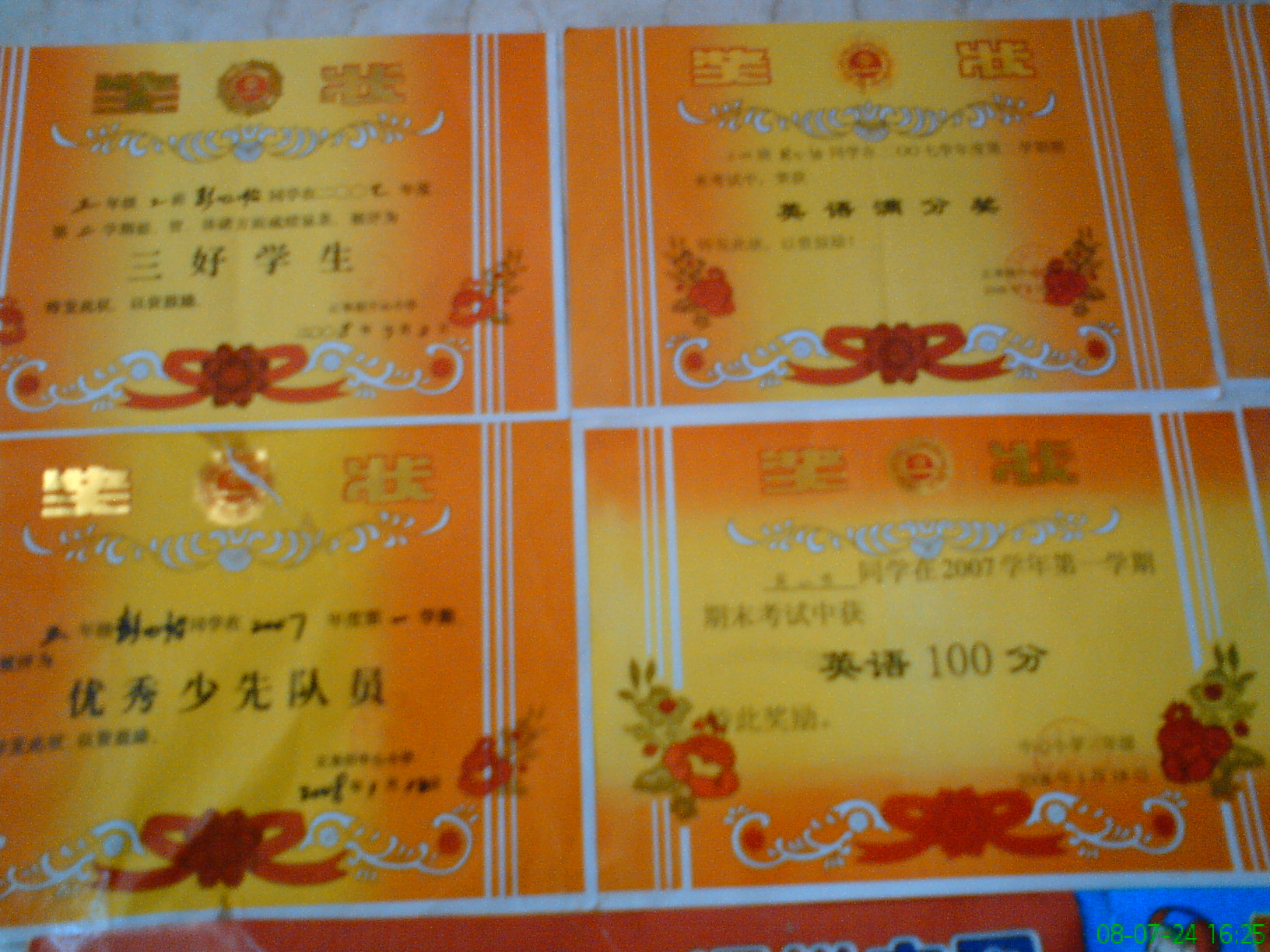 小怡的父母长年在增城市区工作,平常只有奶奶和4岁半的妹妹在家里。小怡说她每年都是班里总成绩第一的学生。可见,小姑娘是个非常热爱学习的学生。小怡家的墙壁上贴满奖状,桌子上放着小怡的作业本,本子里字迹工整,每页都是高分。