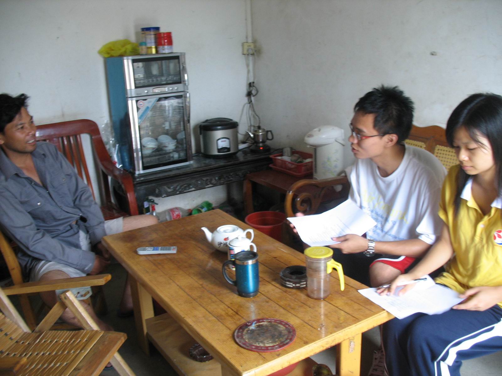 期间,有的小组还拉来学生作“随身翻译”,解决了与年长者的语言沟通问题。提问者多采取自由灵活的方式提出问题,在轻松愉快的氛围中完成调查问卷。采访揭露了农村教育存在的弊端,令人庆幸的是,大部分家长仍然支持学校教育,希望政府在教育上有更大作为,希望孩子将来能考上好学校,走出农家。虽然调研开始后不久,天就下起大雨,不过全队仍然坚持雨中走访。而热情的居民更邀请队员进屋,使得采访更加顺利地进行。几个小时过去了,六个小组拿着调研成果满载而归。