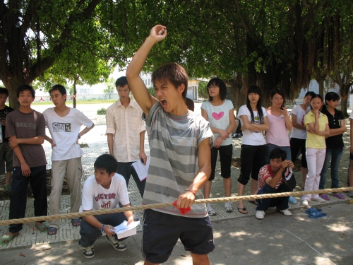 项目六“拔河”。这个传统的压轴项目使整个运动会达到高潮。在评判的一声令下,每个人使出浑身解数,每个小组同心协力,朝着各自的方向使劲拉,不到最后一刻决不放弃。