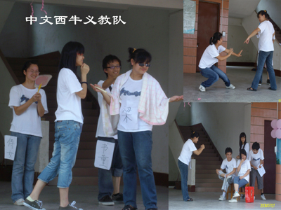 三个班级的表演结束后,由义教老师改编表演的话剧《梁祝后传》把文艺汇演的气氛推向高潮。“一千年以后,当梁山伯再次遇到祝英台时,会发生怎样的故事呢……”带着悬念,全场观众期待着义教老师的演出。表演期间,笑声掌声不断,义教老师们以搞笑的台词、出色的演技征服了在场的每一个人。