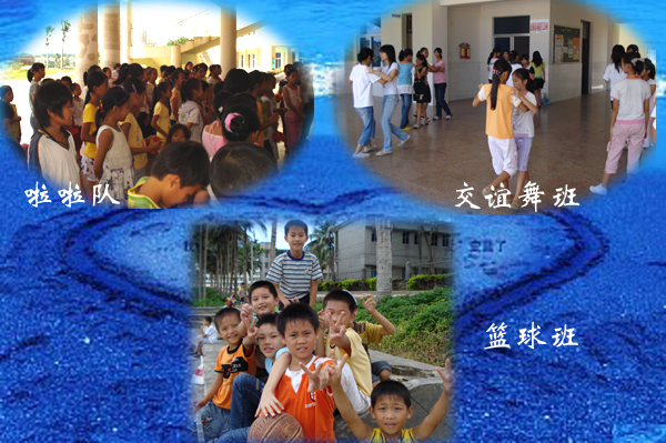 课程分上下午,上午基本上是正课,下午是兴趣班。在上午的课程中还加入了奥运宣传课、感恩的心手语课、逃生课、日本动漫课等别开生面的课程,受到了同学们的欢迎。下午的兴趣班分两节,一静一动,静的有异国文化课、广东话培训班、书法班;动的有篮球班、啦啦队、交谊舞班。两者动静结合,让学生们在愉快的课堂氛围中发展兴趣,培养艺术情操。