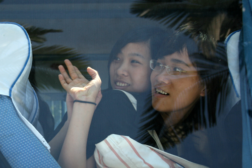 在告别会前,就已经有学生拉着队员们合影留念,并要求队员将相片放上博客。也有学生逐个逐个地找队员签名。在这种分别的时刻,也有的学生流下了不舍的眼泪。校园里随处可见一个个拿着纸笔,东奔西跑的学生,他们把每个队员的联系方式都记下来。