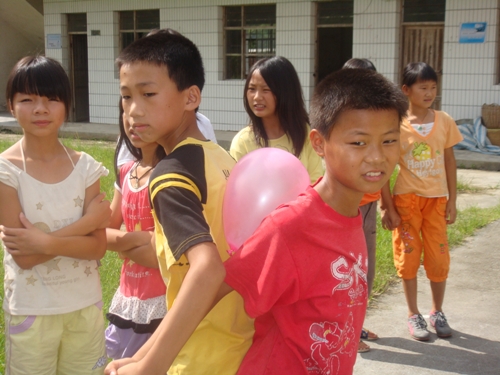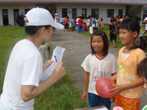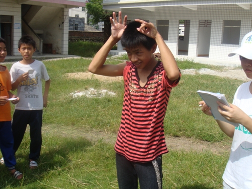 一大早,“绿色行动”三下乡队伍义教组的一众成员就忙活开来,调试音乐、布置场地,只为游园会的顺利进行。九点整,各班班主任带着热情高涨的学生来到草地,开始这场大家期待已久的游园会。首先是站圈圈游戏,以班级为单位,在规定的圆圈里,以站的人数最多为胜,本来大家都以为个子矮小的四年级学生占尽优势,谁知六年级学生分工合作,优化配置,以多一人的优势赢了四年级,取得了第一名。这个考验班级同学团结的游戏一下子让学生们进入游戏状态,在结束之后,大家四散开去玩其他单人游戏。