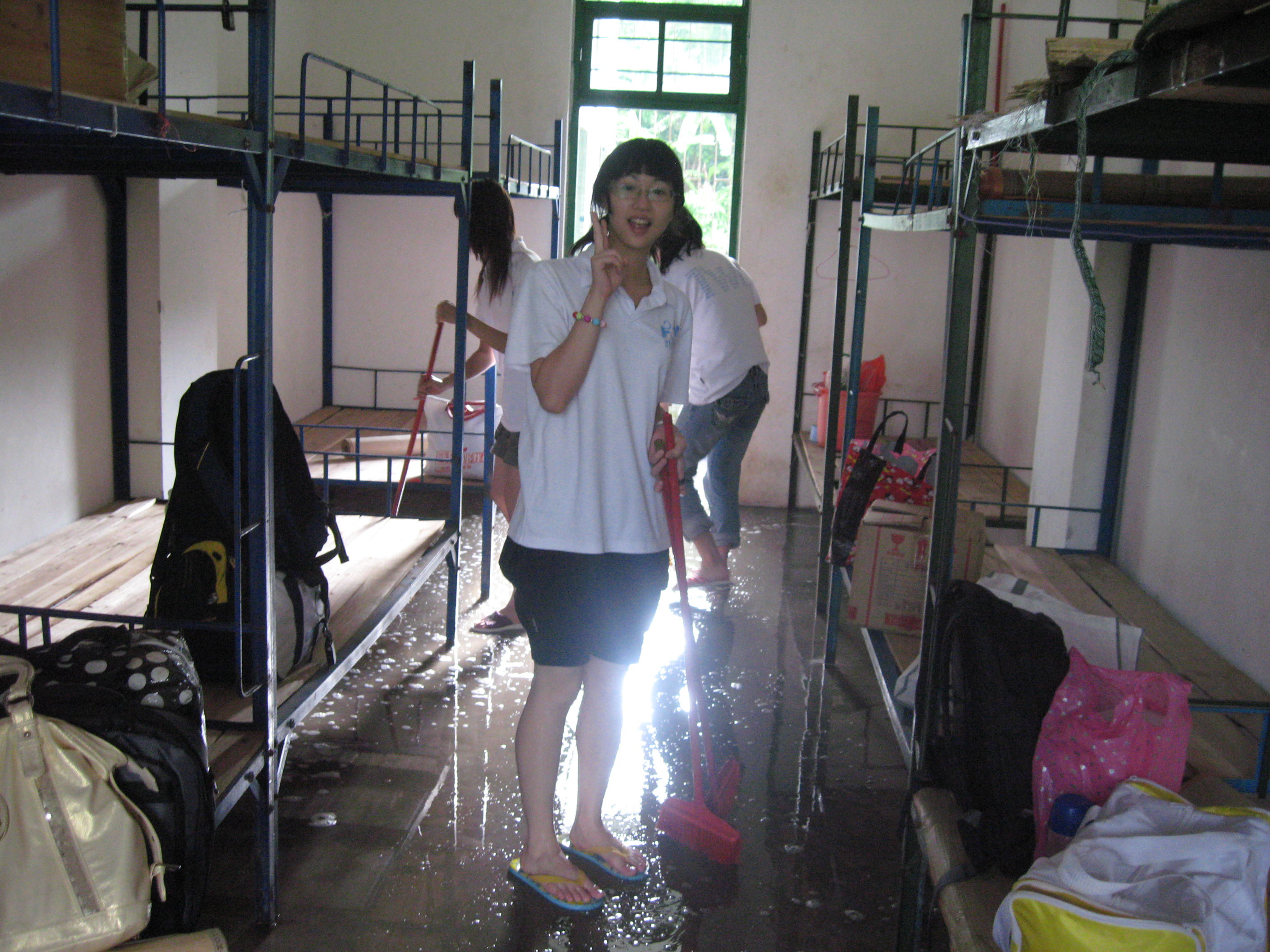 随后“阳光护苗”服务队进入的是一栋七层宿舍楼。对于这一批刚离开父母的大孩子们,这是队员们第一次完全靠自己面对和适应新环境。寝室里的垃圾之多,让队员们举步维艰;寝室里的“野生动物”之多,让女生们的尖叫声此起彼伏;寝室里厕所之混沌未开,让队员们深刻体会量变的效果——“厕所之脏,非一日之寒”。