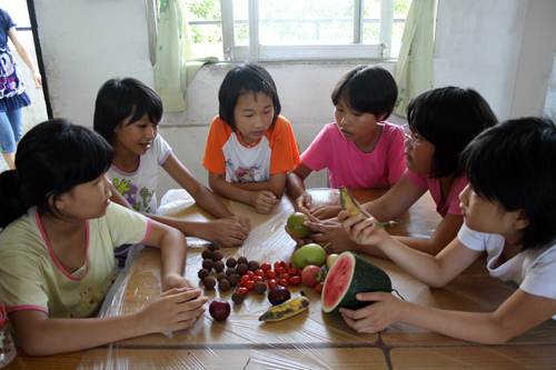 7月22日上午八点半,经贸学院07金融工程“薪火相传”三下乡志愿服务队在东甲小学举办了一场夏日水果大作战。水果大作战包括两个环节——猜水果和水果大拼盘。学生们很积极并很配合地参与了这次活动。