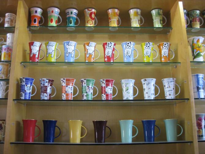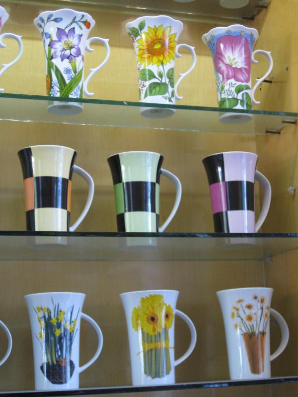 一墙五彩斑斓、包装精致的瓷杯映入眼帘,看着那些整齐地陈列在玻璃柜上的瓷器,队员们都欣喜若狂,对它们爱不释手。也因为这样,队员们对这些精美瓷器的制造过程产生了浓厚的兴趣。