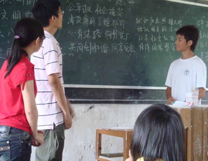 7月21日上午9时,迎着依旧灿烂的阳光,普法队员迈着轻快的步伐步入教室。本次普法课在三个班同时开始。 简短的自我介绍之后,一个由队员们自编自演的小品上演了。该小品以“未成年人隐私权的侵犯与保护”为题材,用轻松、幽默的形式将相关的法律知识融入作品中。学生们在捧腹大笑的同时也领会到了实用知识。