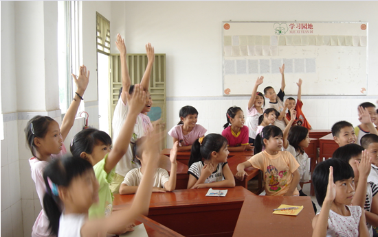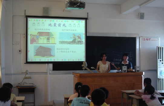 课堂上,同学们表现得十分活跃,当义教队员提出问题时,他们纷纷高举双手抢着回答问题;当义教队员讲解有关地震知识时,他们瞪着大大的眼睛仔细地听讲,似乎害怕听漏了一词一句。