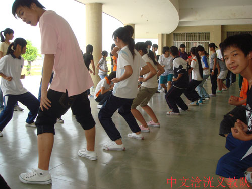 学生们已经习惯了大班教学,习惯了老师在上面讲,下面的学生想听就听,不想听也可以浑水摸鱼。“小老师”识破了他们的“小算盘”,决定来个小班教学。组长龙素云亲任总教练,选了几个身强体壮的队员进行“魔鬼式”训练。每班配备了至少两名老师,实行“一对五”管理模式。这样一来,学生都只能服从命令了,都跟着老师的步骤学习一招一式。