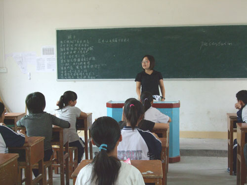 在老师的鼓励下,大家都齐声答应把歌曲学好,日后把它作为表演献给三下乡的队员们。学生们学得很快,虽然刚开始大家都比较腼腆害羞,但随后在林婷的带领下渐渐放开嗓音。优美的旋律,加上师生们认真的神情,甜美的歌声,霎时传遍教室每个角落,深深打动了在场的每一位老师。