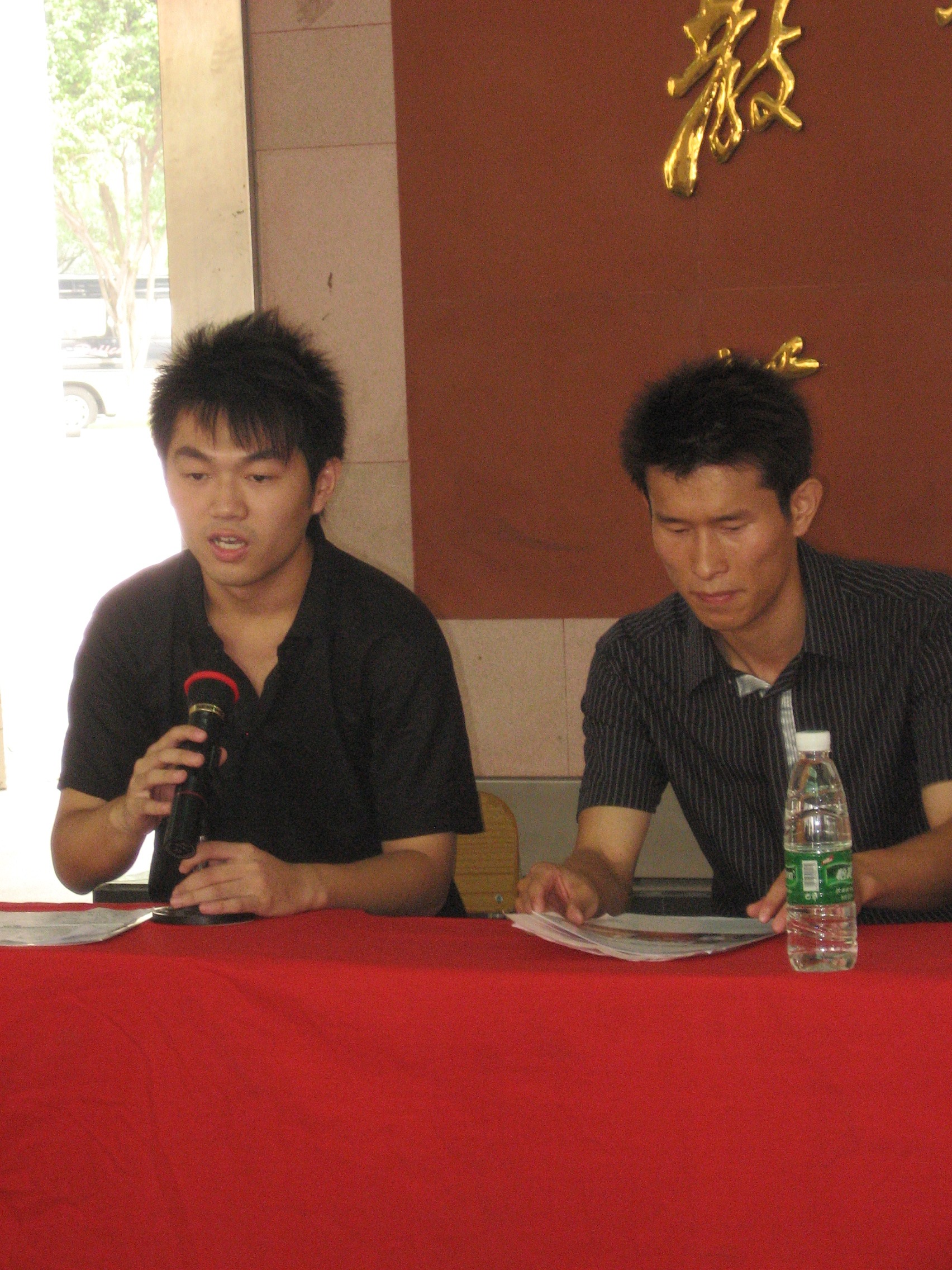 志愿者代表林泳聪也在会上发表了演讲。他代表整个三下乡服务队对东莞高埗镇政府、团委、高埗中心小学表示衷心的感谢,感谢他们为服务队提供一个暑假实践的机会,并表明了整个服务队的决心,努力完成三下乡任务。
