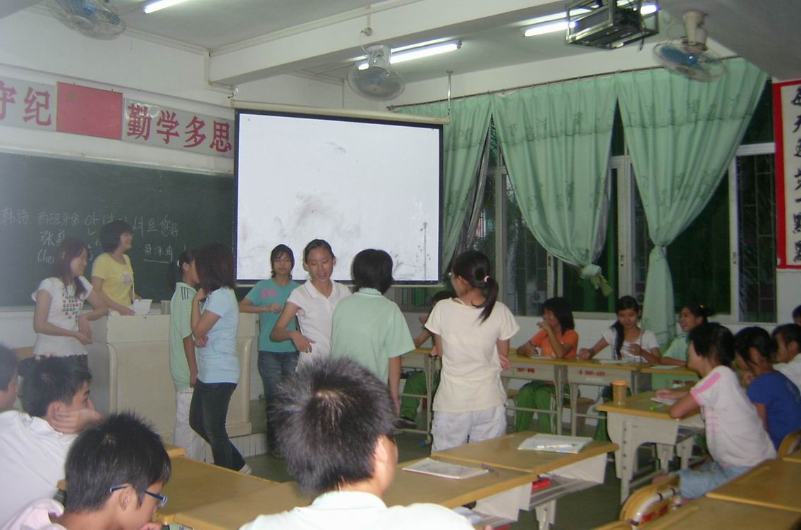 而二班三班的班主任吕倩雯和李淑贤都不约而同的给同学们播放英语动画片。她们认为,同学们经过一天的学习比较疲惫,培养一个欢快的气氛也是一个不错的选择。