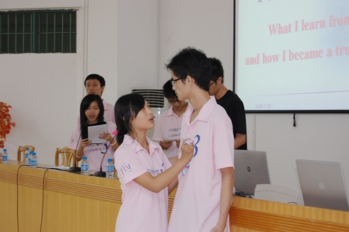本网讯 7月16日晚上,在广东省罗定市进行三下乡服务的经贸队伍,于罗定实验中学举行了交流会,旨在与当地小学的英语老师增进沟通,相互学习。会末,罗定一队上演了一场精彩的《霸王别姬》。