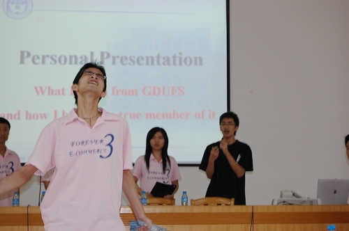 而男主角配音黄伟忠同学身兼晚会主持的重任,用一口流利的英语介绍广外的特色教学方法,并展示了广外学生的风采。在剧目正式上演时,他又与男主角配合无间,以声动人。