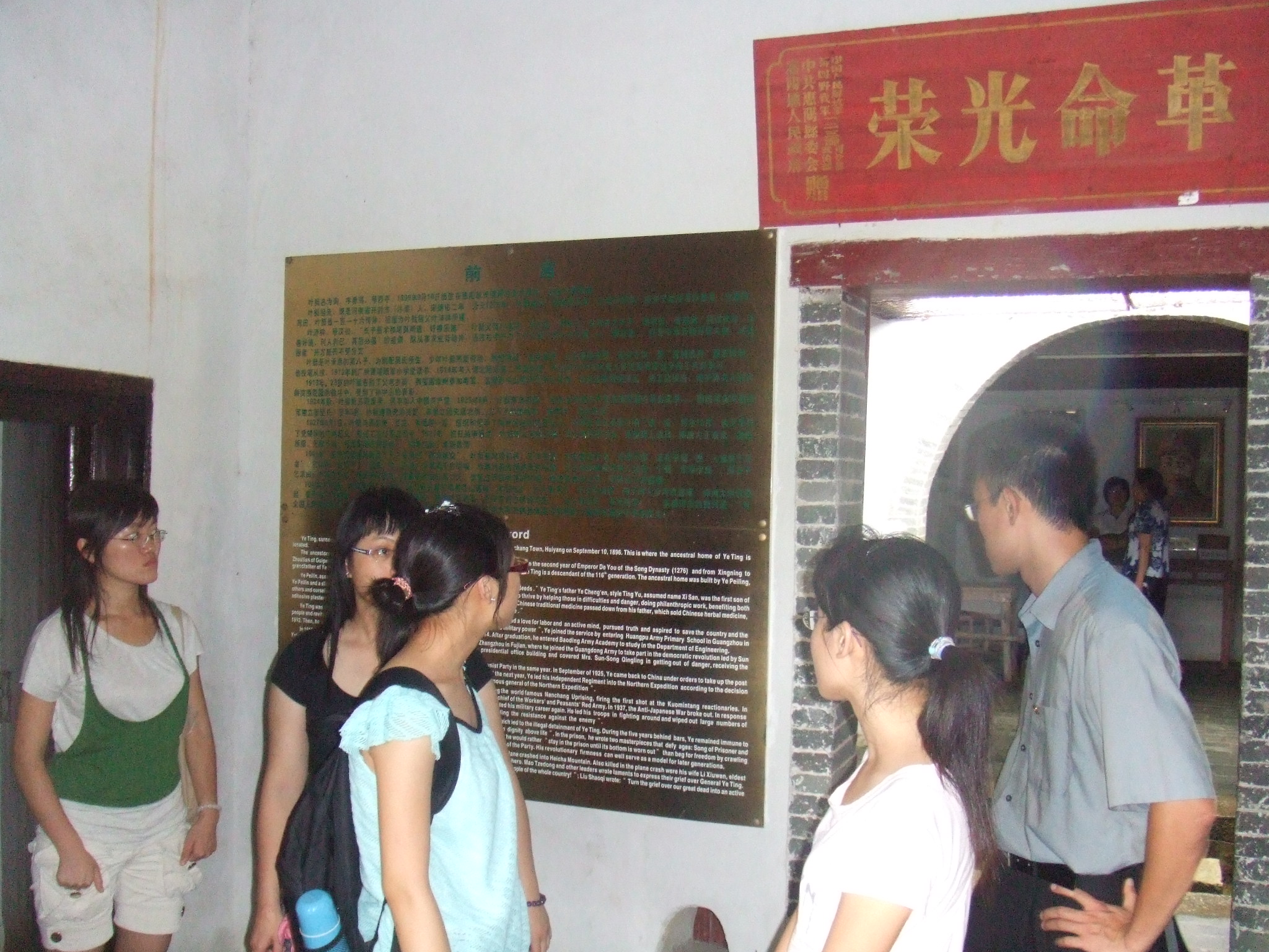 惠之松柏:叶挺是这里最出名的人物,也是惠州惠阳人精神的典范。叶挺故居周围绿树勃发,旁边的房子保持着和故居一样的风格。走进故居,可以看见叶挺使用过的农具,还有他买给妹妹的织袜机,以及他与家人的卧室。故居内还有介绍叶挺一生的介绍牌,其中包括叶挺后代和国家领导人工作的相关情况。参观学习过程中,一位当地女老师询问同学们的情况,也介绍了叶挺故居的相关情况。同学们仔细听讲,并不时提问。