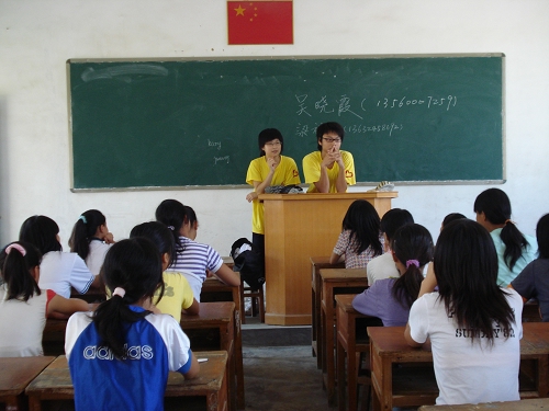 开幕式表演结束后,各班学生在“老师”的带领下列队回班搞卫生。清洁完毕,各班老师还在班上宣布了一些注意事项或谈些个人的心得体会。当被学生问及为什么要学英语时,任教大湾中学3班的梁老师认真地回答;“为了国家的强大。”用真心感动孩子,用真心带给学生希望,清远三下乡将会成就一次梦的启航。