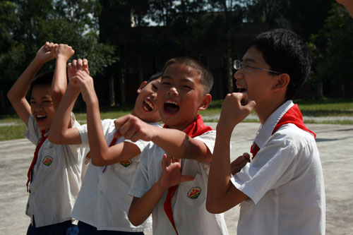 进球后,学生欢呼雀跃