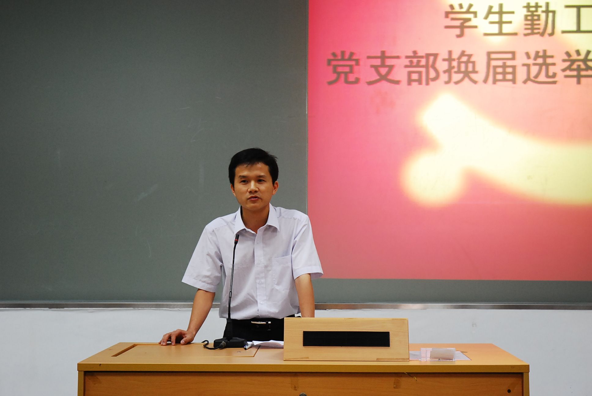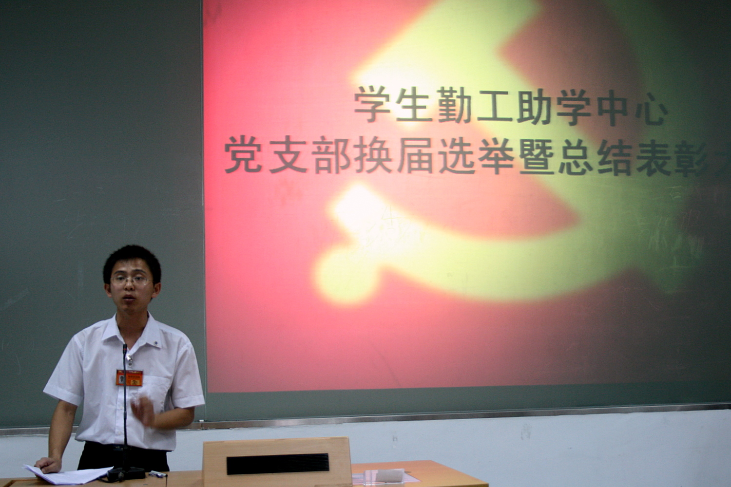 陈杰超作为上一届党支部委员会的代表作党支部委员会工作报告,谭丽荣代表勤工助学中心作了上一年度工作总结报告。