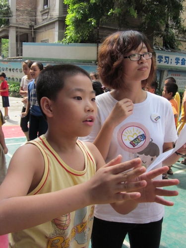本网讯 7月29日下午,天空虽飘着几朵乌云,但博爱小学的操场上却激情四射,活力无限。原来,这里正进行着I-Shuttle小列车历险之旅。高举的小手,灿烂的笑脸,歇斯底里的呐喊,每位小朋友都积极参与其中。高涨的热情击败了阴霾的天气,孩子们玩成一片,乐在其中。