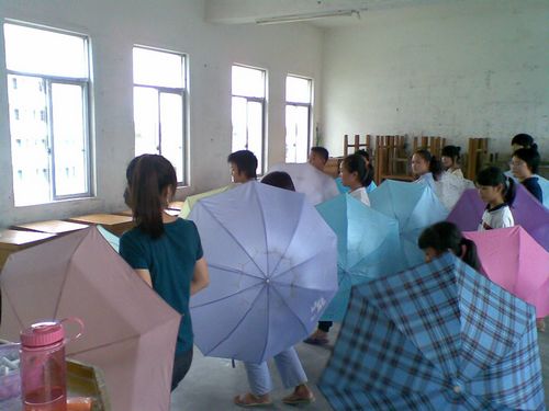 日本舞蹈的学习也是乐趣十足。没有日本纸伞,同学们就拿着准备好的雨伞学舞。颜色缤纷的雨伞旋转着,投影着同学们的欢乐笑脸。