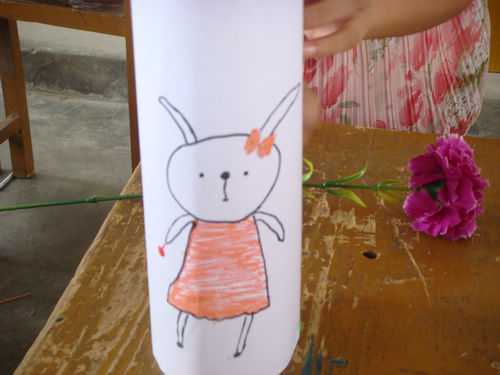 虽然条件很有限,但为了让马水的小朋友充分体会日本文化风情,任课老师还是想方设法地准备塑料瓶、假花等日本插花所用的材料。