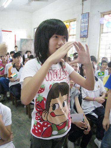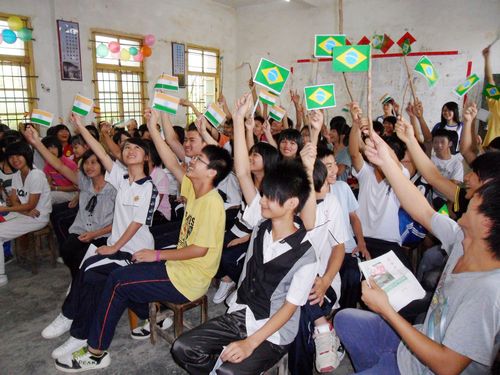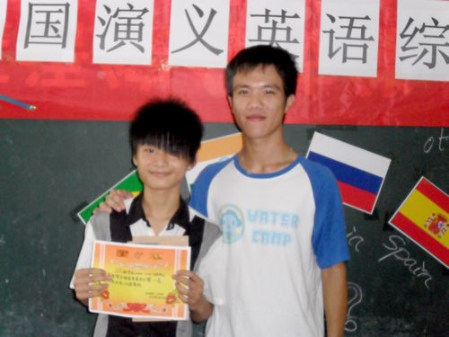 在同学们热情的欢呼声中,“四国演义”英语综合技能大赛结束了。代表巴西的班级以高出第二名西班牙班40分的好成绩获得了本次比赛的第一名。他们高举巴西旗帜,先大声唱出今年世界杯主题曲的前奏,然后高喊着他们的口号:文能称霸,舞能称雄,四国演义,巴西最强。其他代表国家的学生们也很有风度,都为巴西班的胜利而挥动手上的小旗。