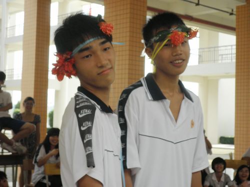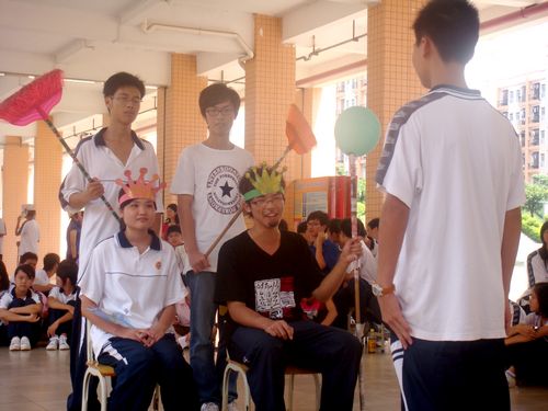 一班带来的《Hero Saves the Beauty》打响比赛的头炮。为了增强《Hero Saves the Beauty》这部悲剧的表演效果,一班的孩子们在演出前就颇费心思地利用简单材料制做戏服和头饰,甚至将扫把改装成侍卫护驾的武器。卖力的表演,优美的台词博得观众阵阵掌声。
