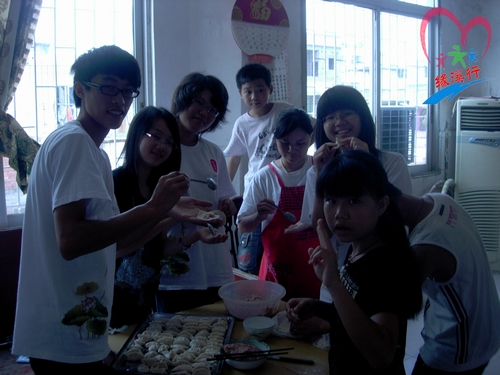 学生家长邀请老师们一起包饺子。于是家长、老师、学生一群人七手八脚地包出各式各样的饺子,其乐融融。午饭后,老师黄林祥和学生的外公一起切磋了书法,并互赠墨宝。