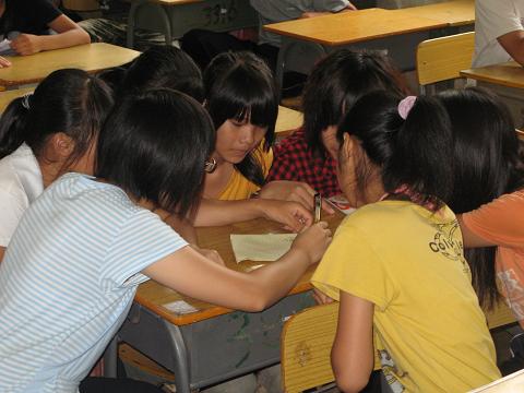 主持这节课的是陈瀚老师和璐怡老师。璐怡老师在课前就已经把21件要拍卖的东西写在了黑板上,陈瀚老师在上课铃响后马上跟孩子们说明了生涯拍卖的方式。全班被分成了8个小组,每个小组各有500万的资金。每个组都有一个指导老师,负责综合学生的意见为全组做出最优选择。