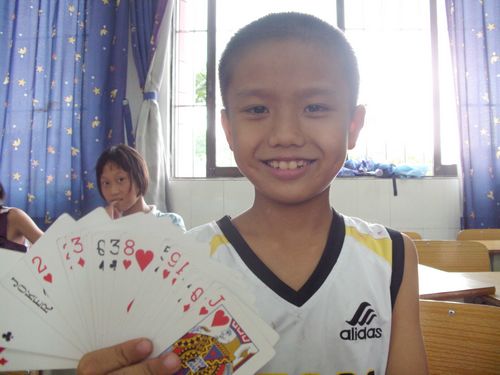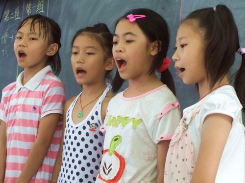 在一片欢呼声中,I*funny班的四名小小公主,手拉手,为大家来了一曲《隐形的翅膀》,纯纯的童声,轻轻的伴奏,让人听得如痴如醉。到了高潮部分,讲台下面的同学齐齐做起了手语,一双双小手在教师上方摇动着,每个人脸上都洋溢着幸福表情。那边的四叶草班的比拼则由两名“草儿”表演的小品拉开了序幕。两名小男生的表演声色俱全,逗得大家捧腹大笑,班里的气氛一下子活跃起来。